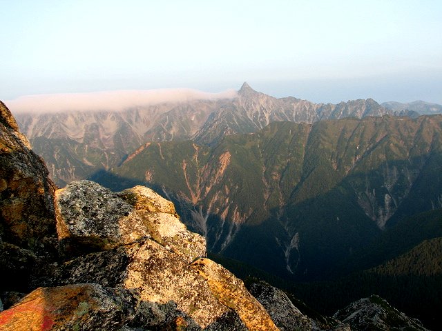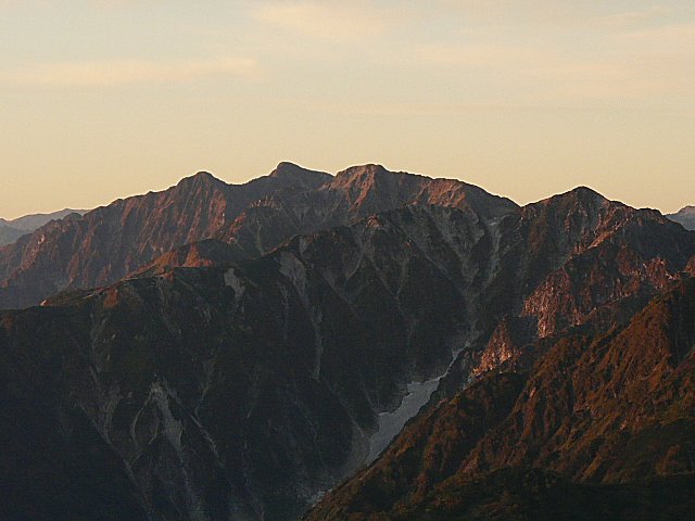 「朝の穂高連峰」(南岳・中岳・大喰岳・槍ヶ岳)(常念岳にて)