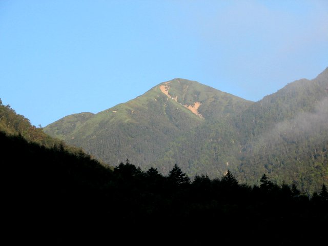 「朝の白馬鑓ヶ岳」(黒菱林道にて)
