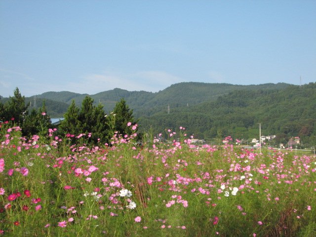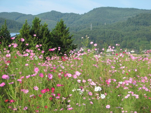 「赤い花の咲くそばの畑」(穂高有明にて)