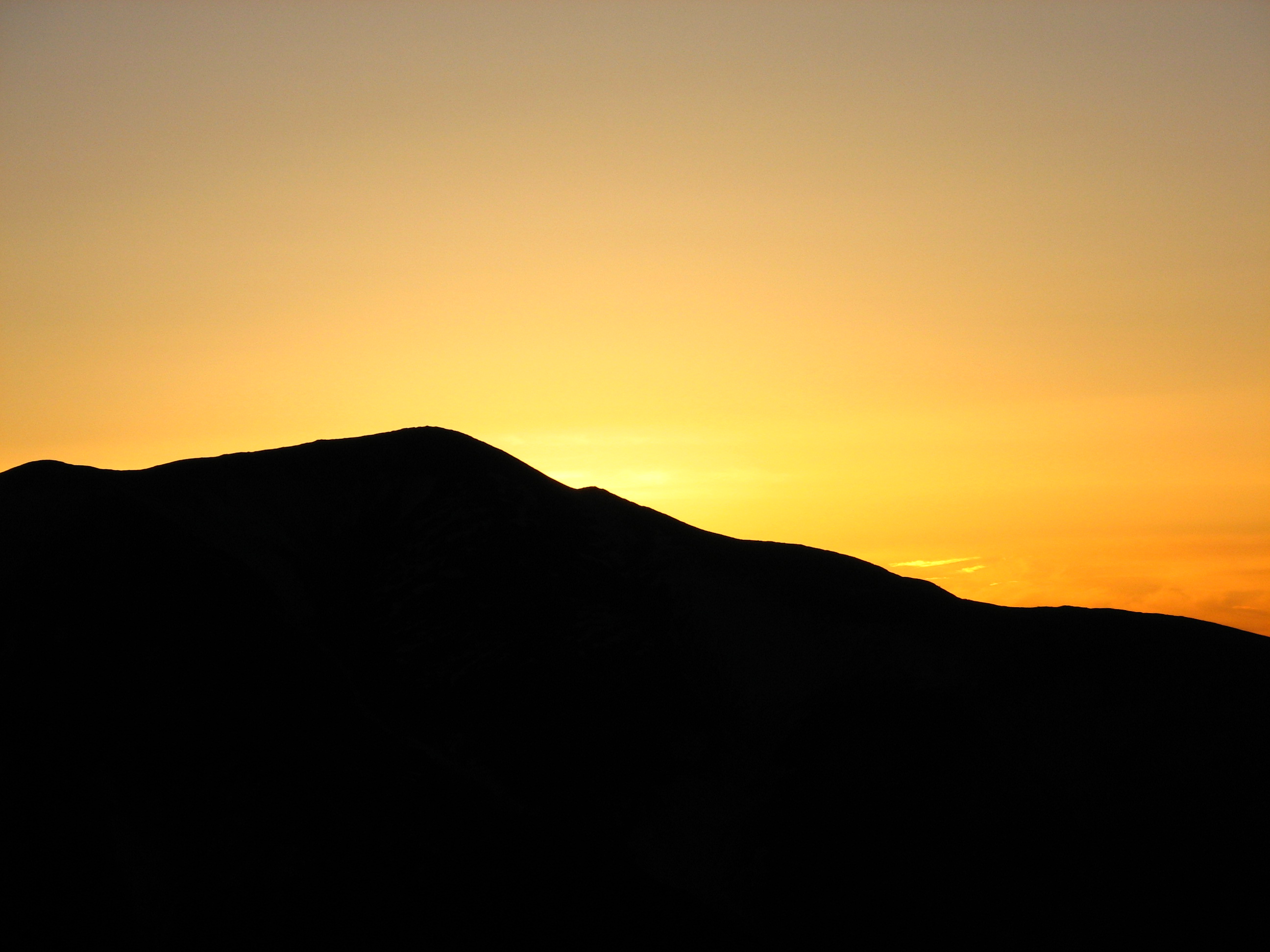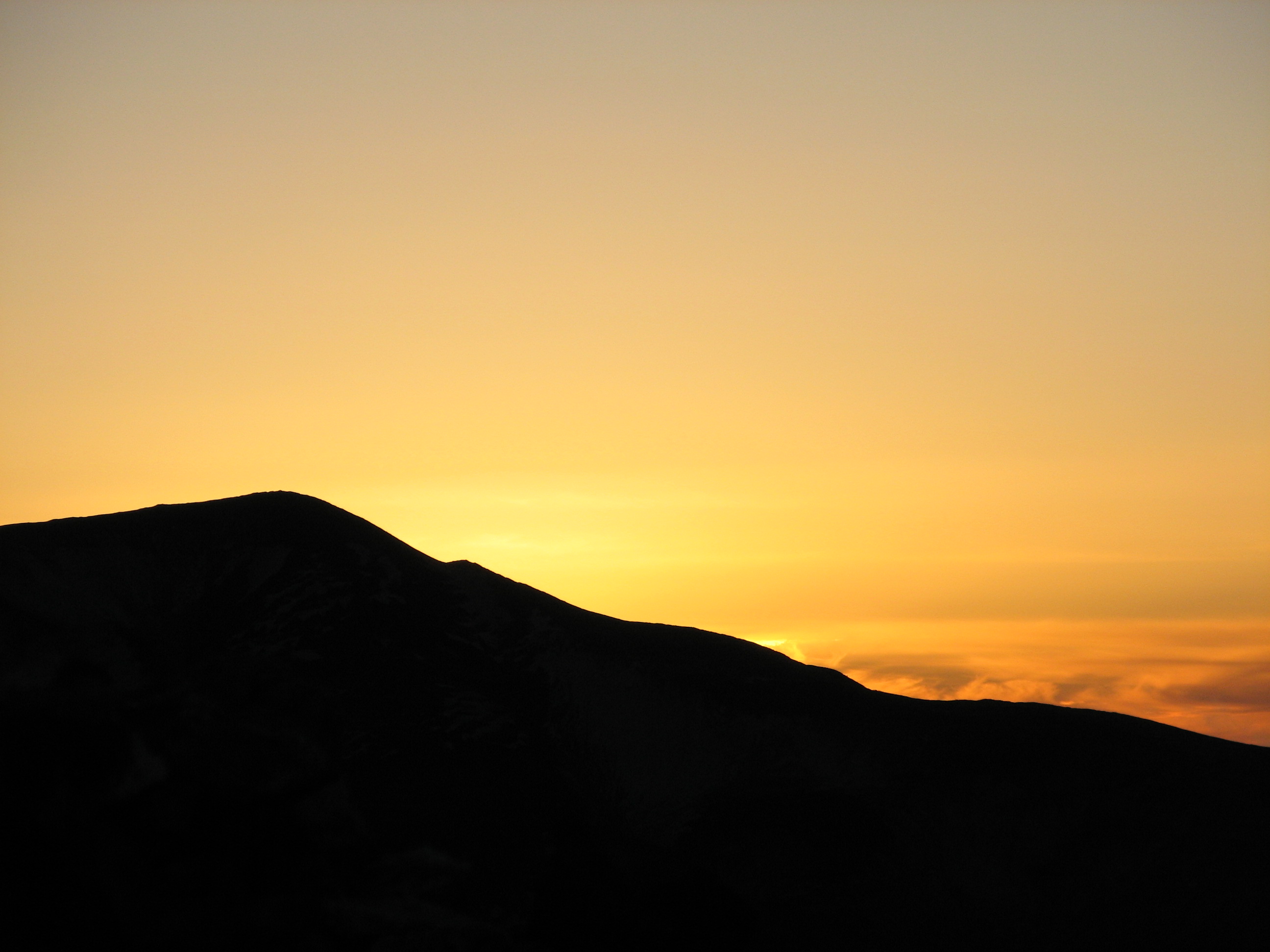 「夕焼けの雪倉岳・朝日岳」(白馬大池・雷鳥坂にて)