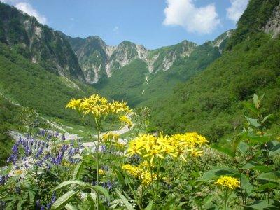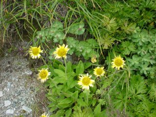 「ミヤマアキノキリンソウ・ミヤマトリカブト・ウサギギク・イワギキョウ」(槍沢に咲く秋の花)