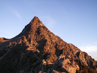 「初秋のモルゲンロートの杓子岳」(白馬村にて)