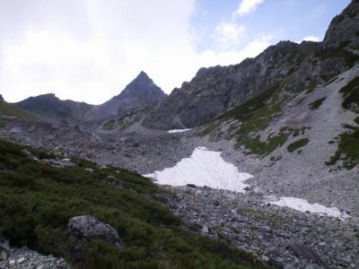 「槍沢からの槍ヶ岳」(槍沢にて)