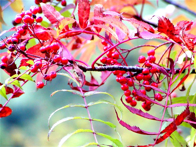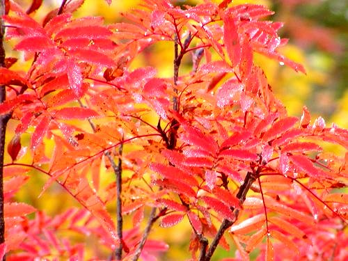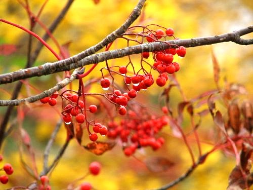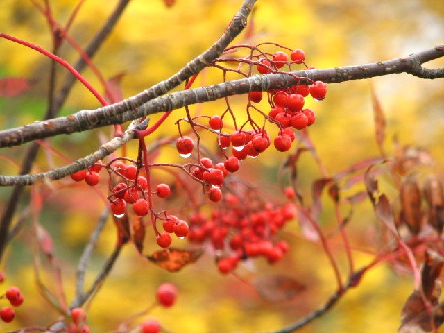 「朝露に濡れたナナカマド」(小谷・栂池自然園にて)