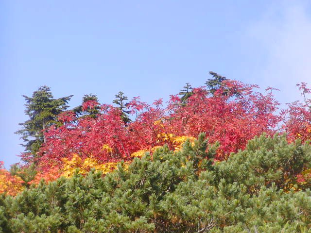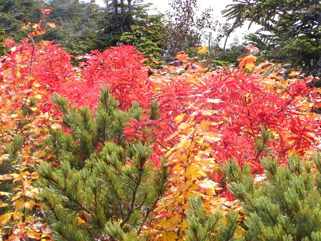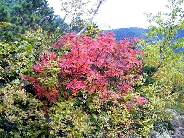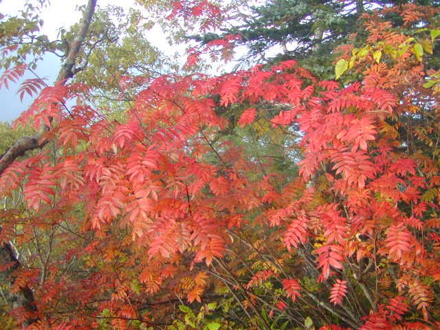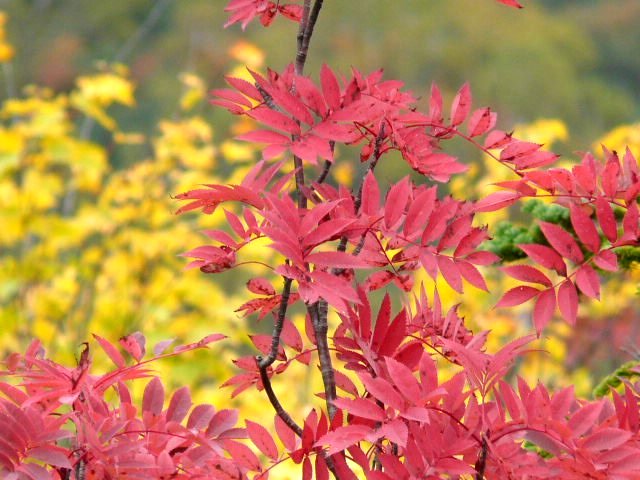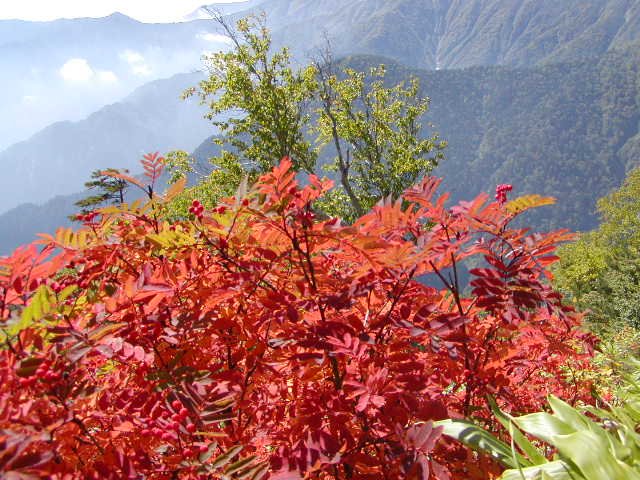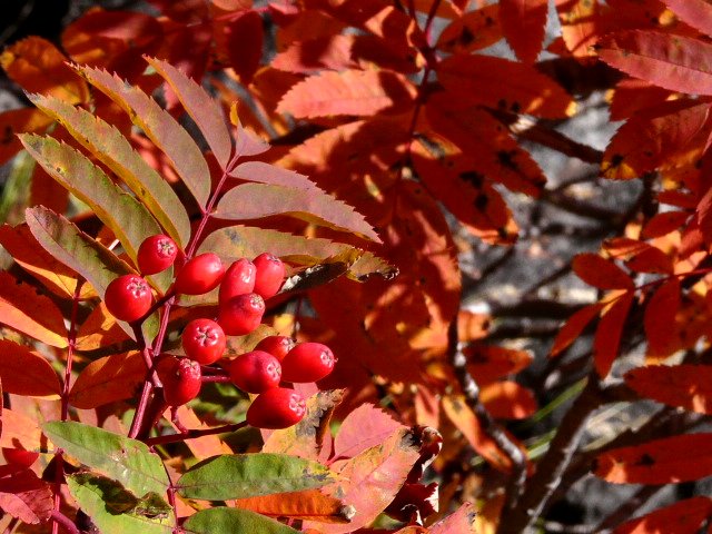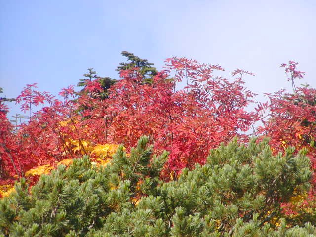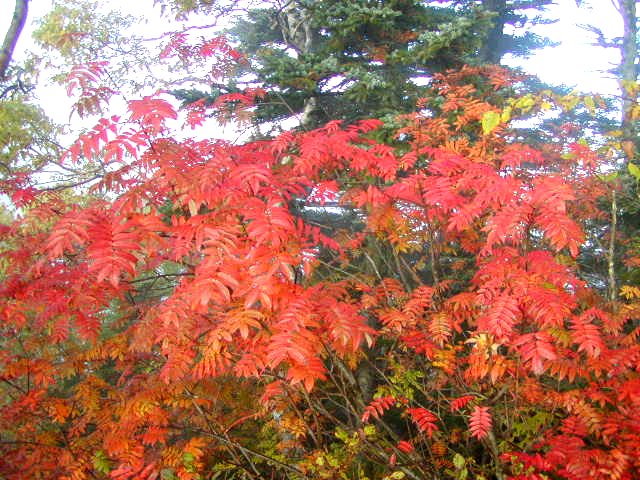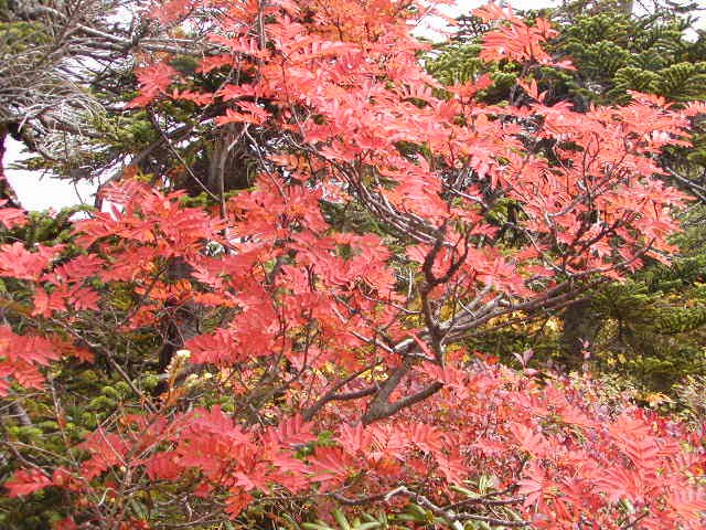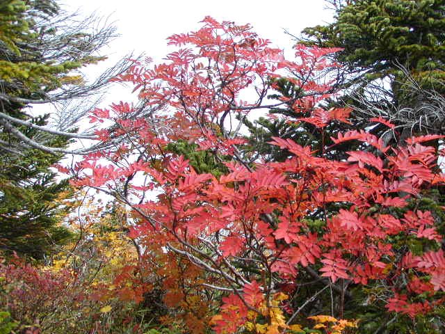 「ナナカマドの赤い実と赤い葉」(爺ヶ岳にて)