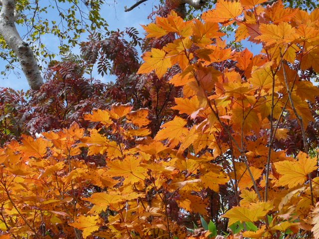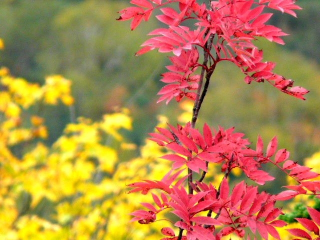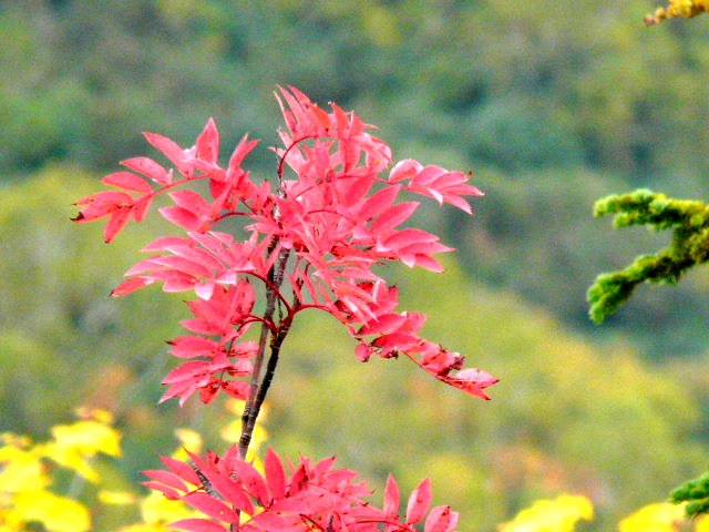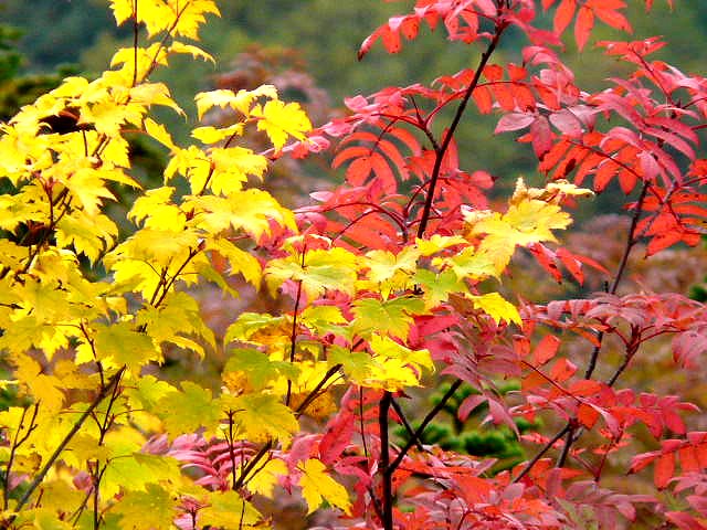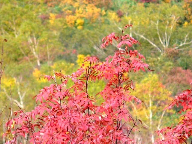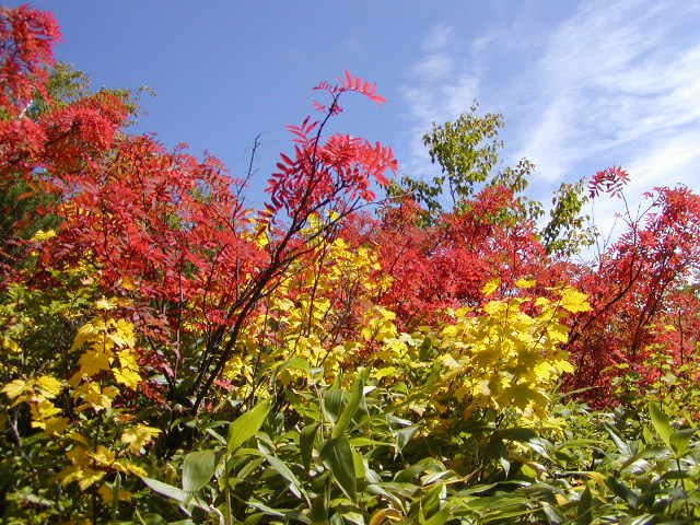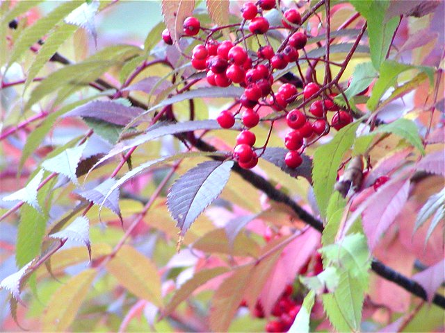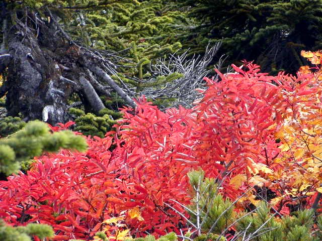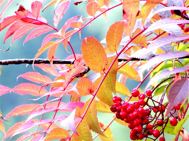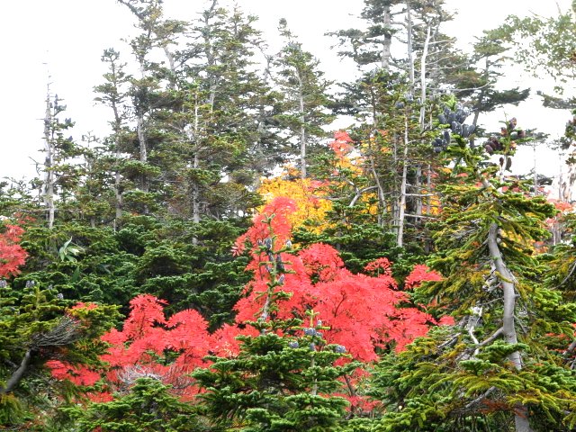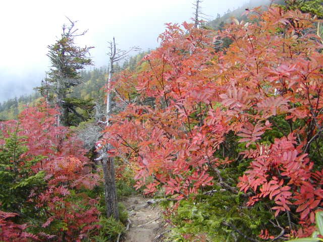 「ナナカマドの赤い実と赤い葉」(爺ヶ岳にて)