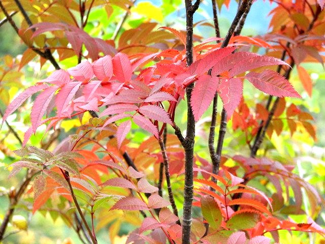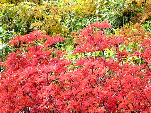 「赤くなり始めのサラサドウダン」(秋の栂池自然園にて)