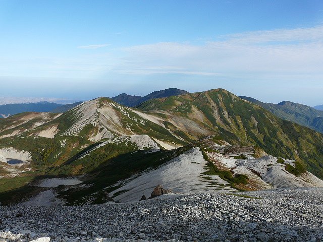 「初秋の蝶槍〜常念岳〜横通岳〜大天井岳」(長峰山にて)