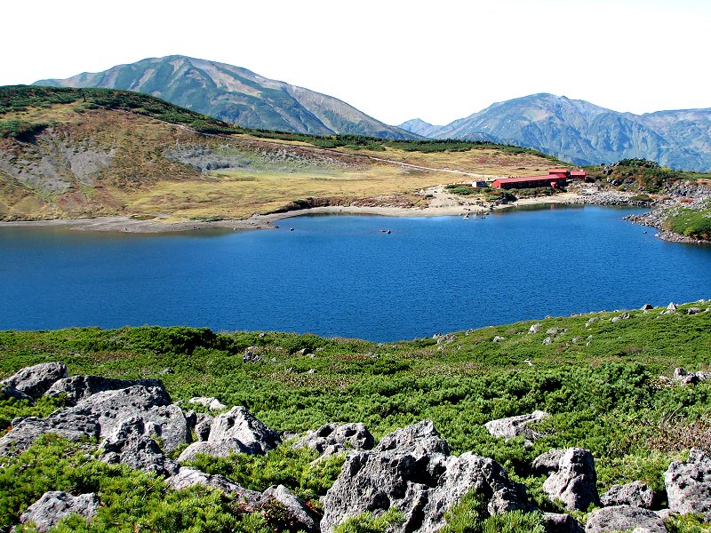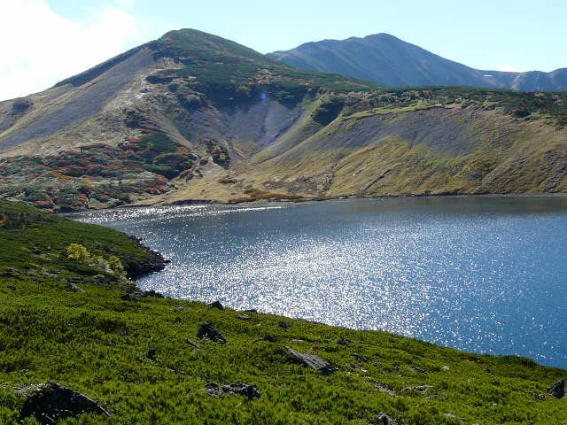 「秋の白馬大池と雪倉岳・赤男山・朝日岳・栂長山・五輪山」(白馬大池にて)