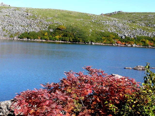「ナナカマドの紅葉と白馬大池」(白馬大池にて)