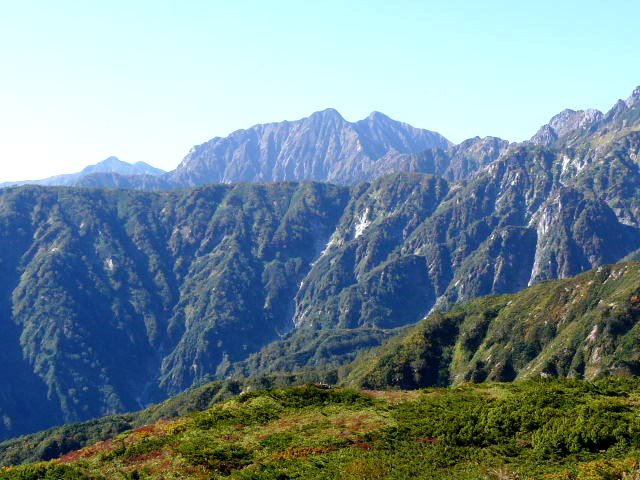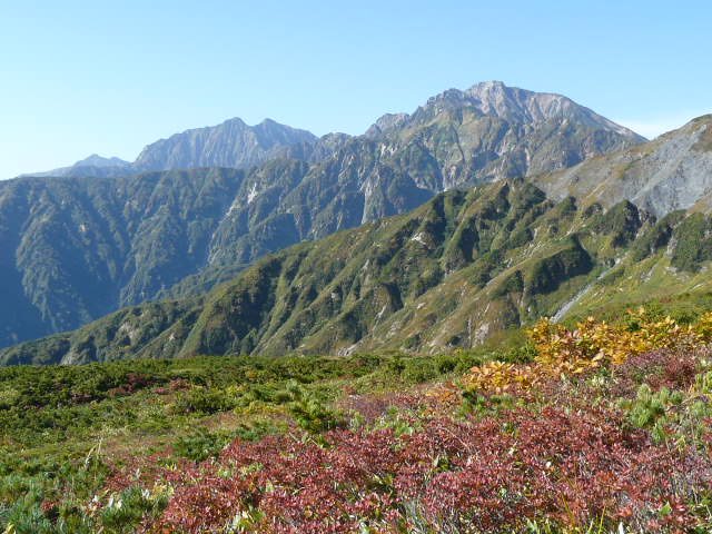 「紅葉の爺ヶ岳〜鹿島槍ヶ岳稜線」