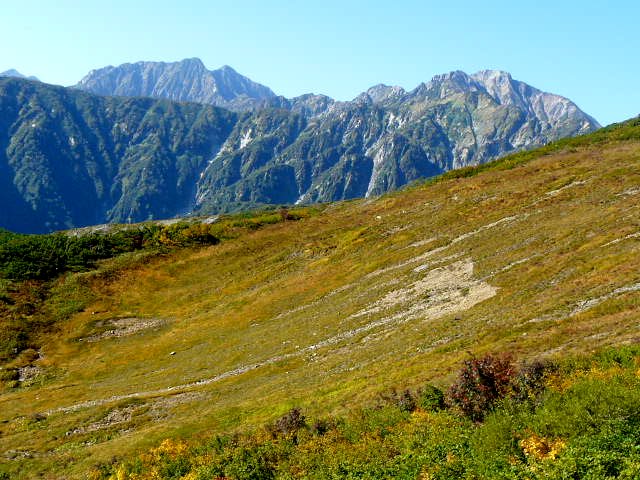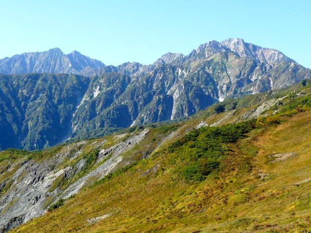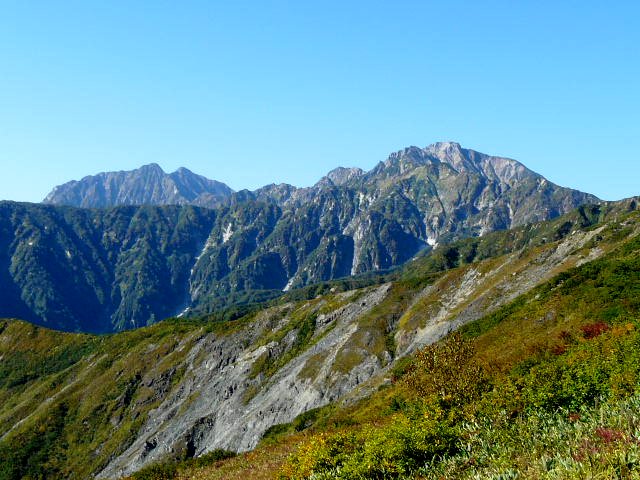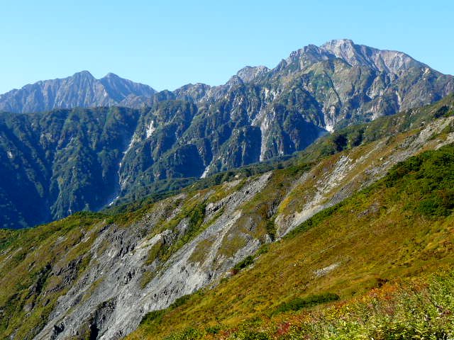 「秋の針ノ木岳・スバリ岳」(柏原新道にて)