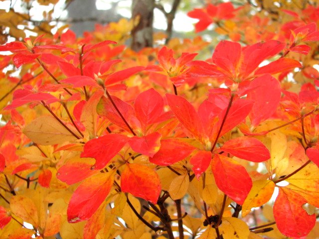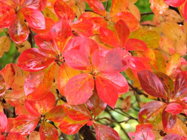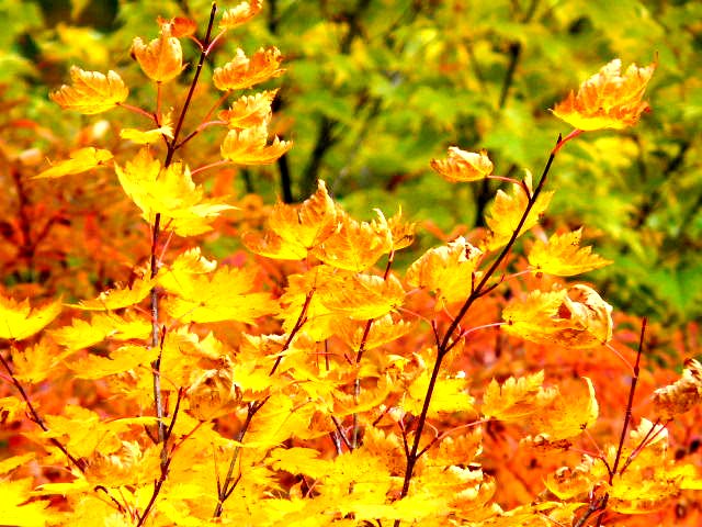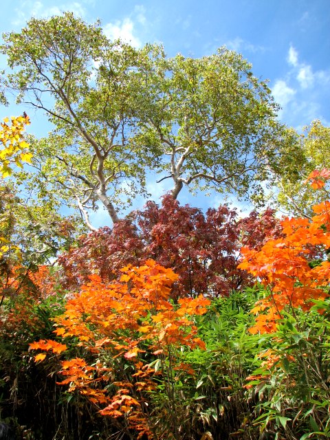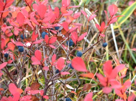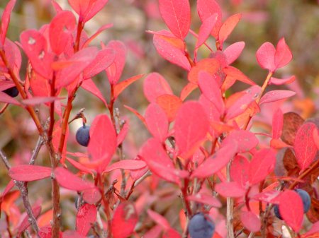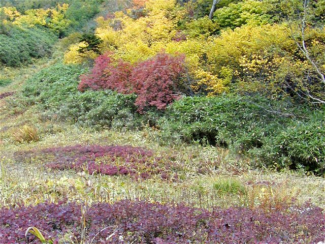「紅葉したクロマメの木・ウラシマツツジ」(秋の栂池自然園にて)