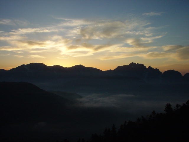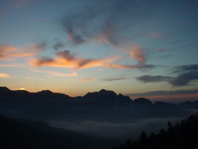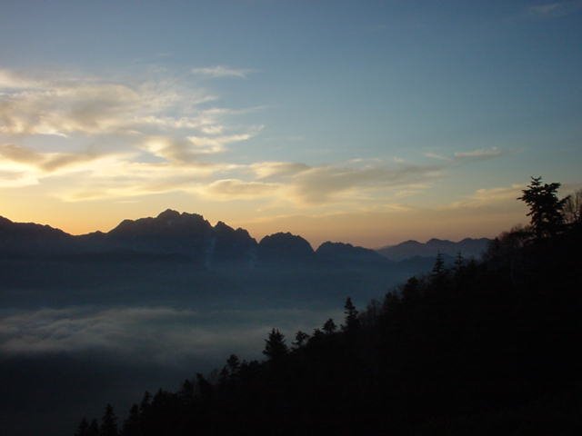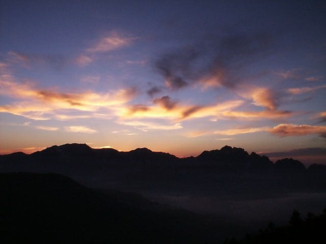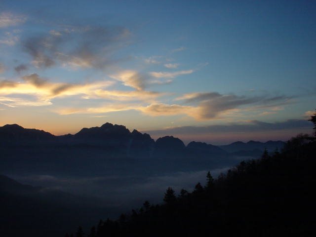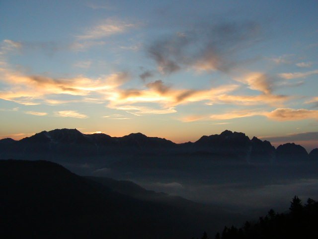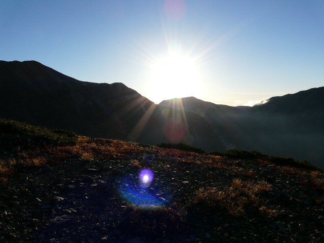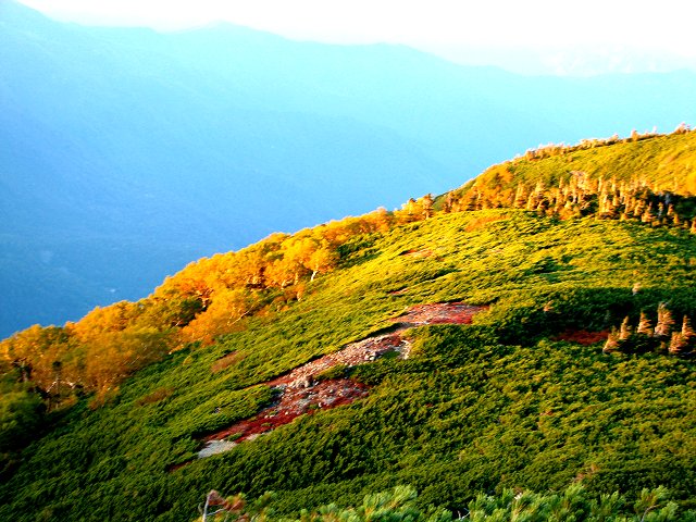 「朝焼けの初秋の白馬三山」(八方尾根・黒菱平にて)(Clickで大画面表示)