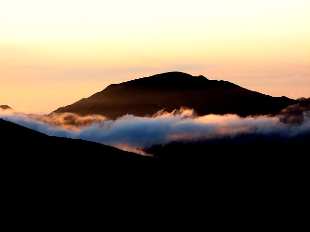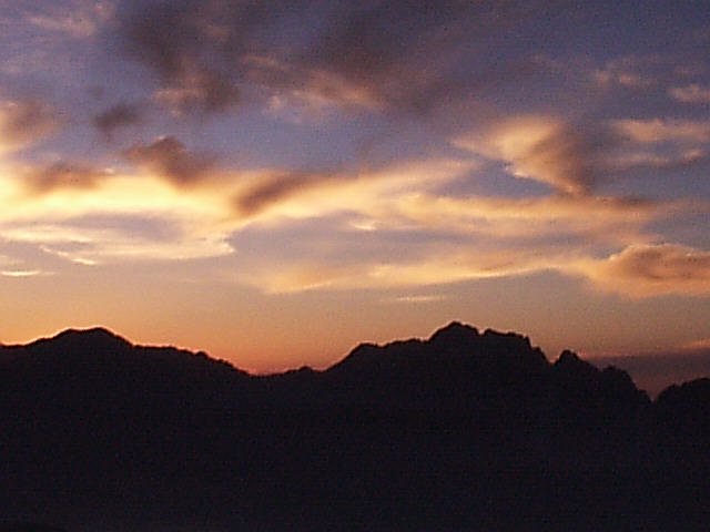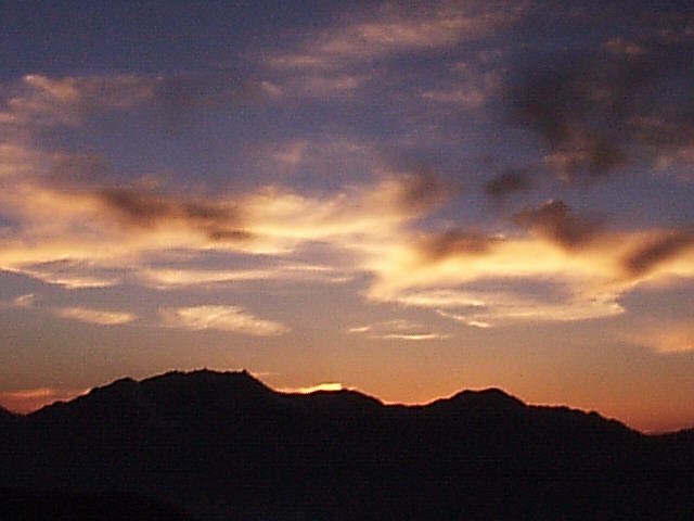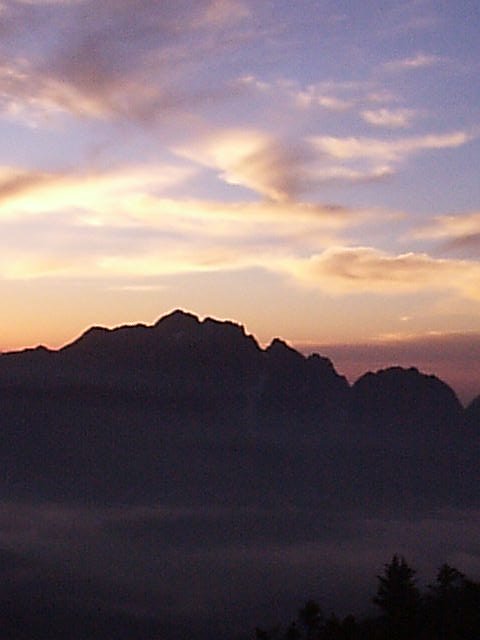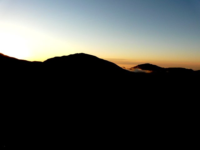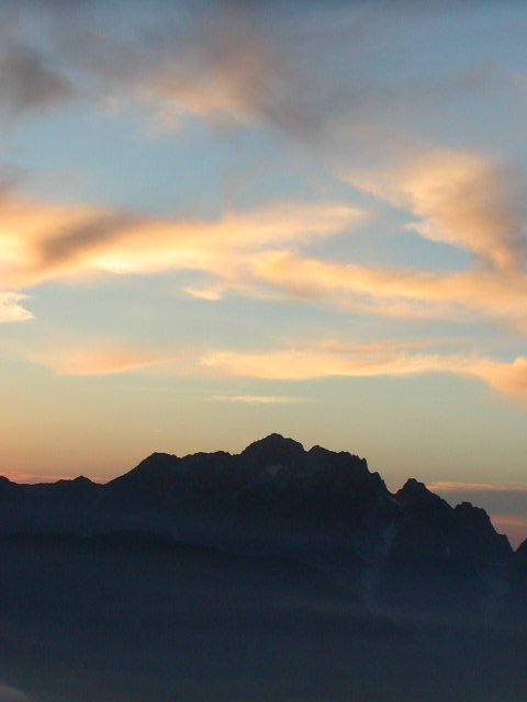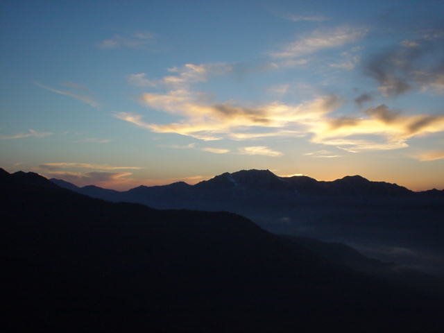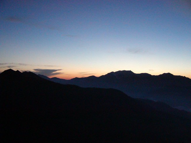 「夕焼けの朝日岳と青い雲」(白馬大池にて)