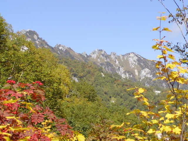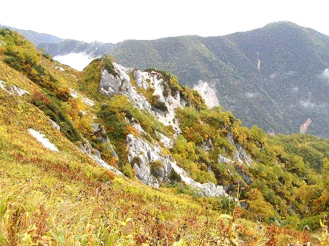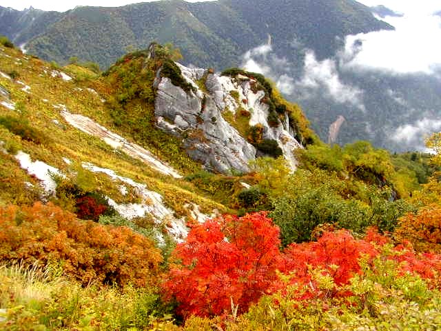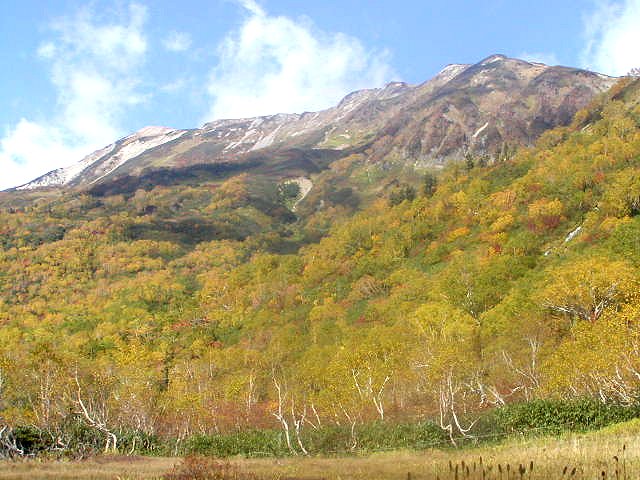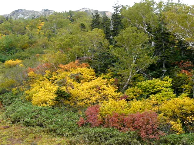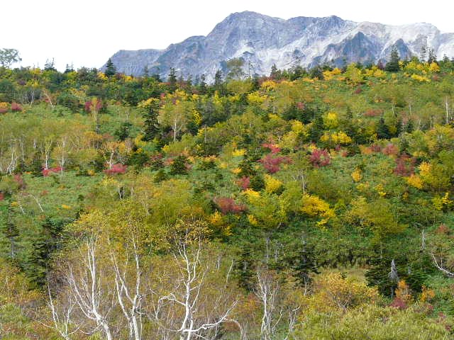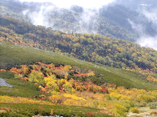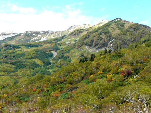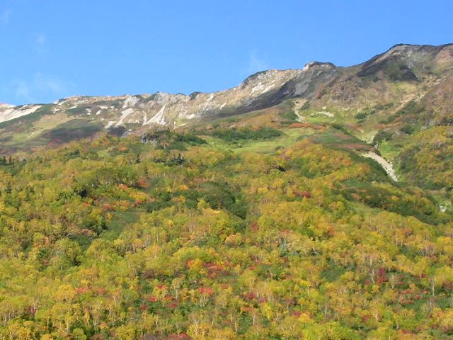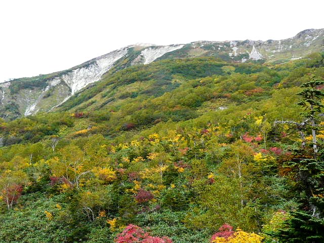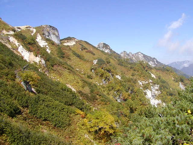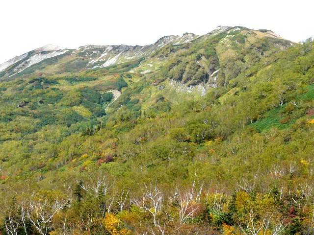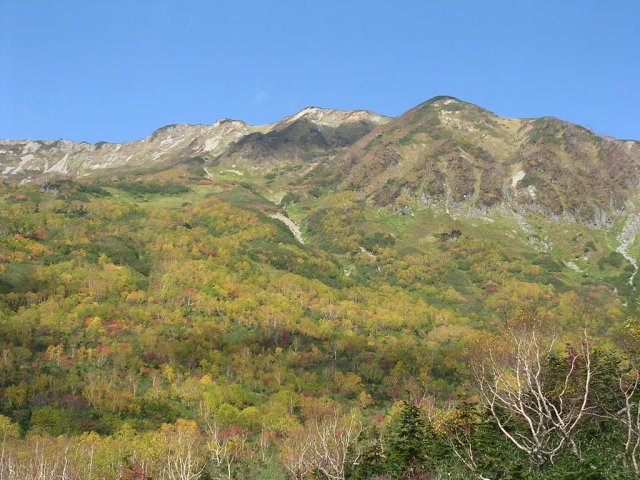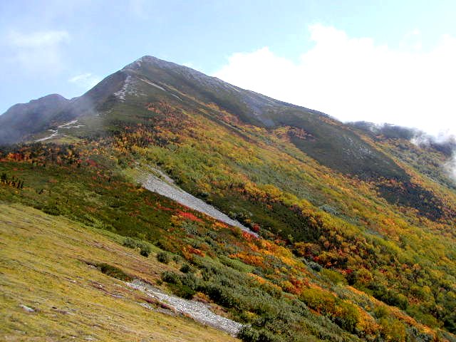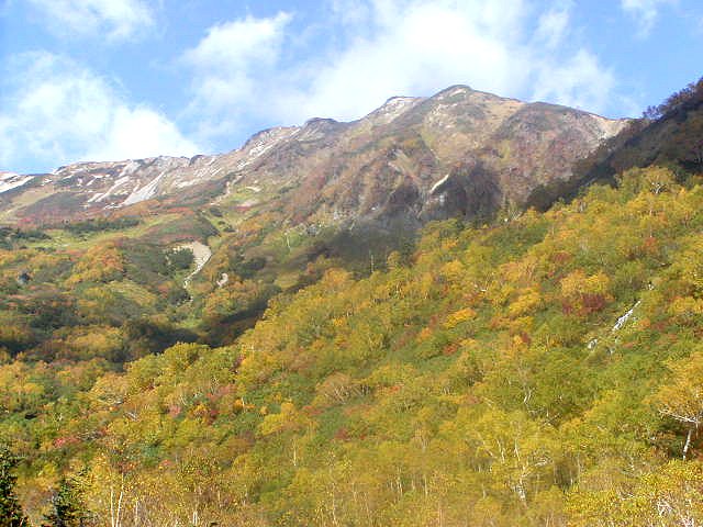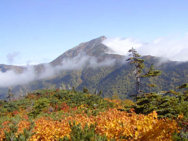 「秋の鳴沢岳〜岩小屋沢岳」(柏原新道にて)