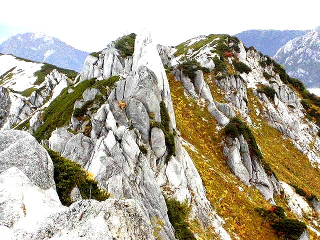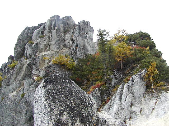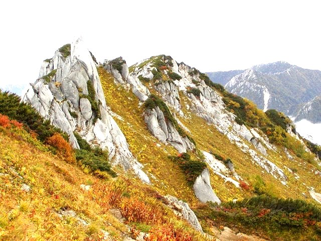 「草紅葉・紅葉と花崗岩の奇岩」(燕岳〜北燕岳にて)