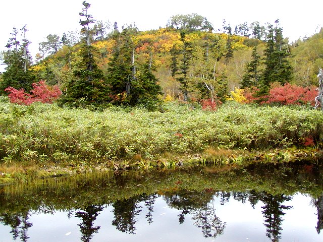 「白馬大池湖畔の紅葉」(白馬大池にて)