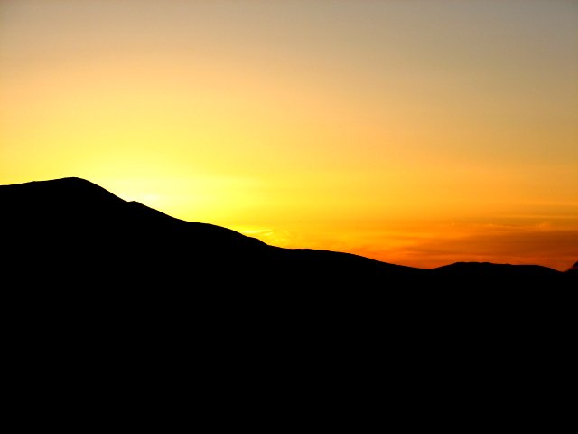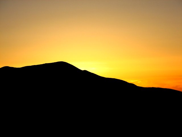 「夕焼けの雪倉岳・朝日岳」(白馬大池にて)