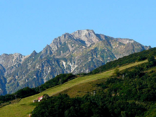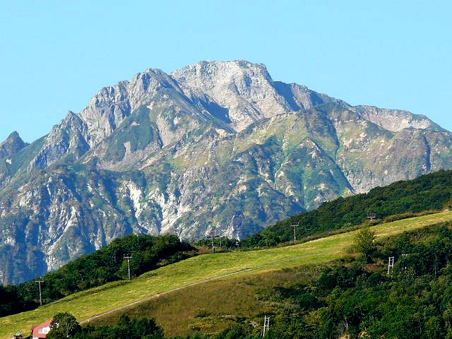 「初秋の八方尾根と五龍岳」(白馬村落倉高原にて)