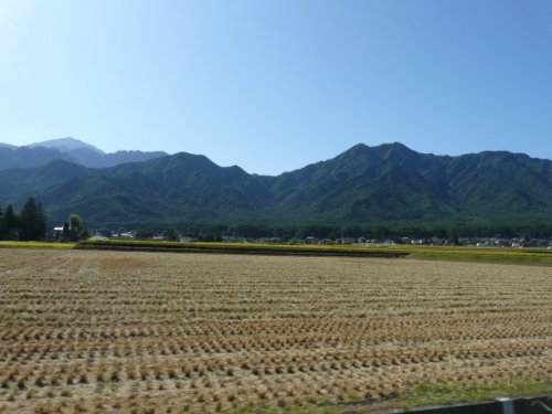 「初秋の田園風景と爺ヶ岳・鹿島槍ヶ岳」(松川村〜大町にて)