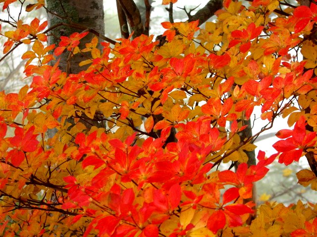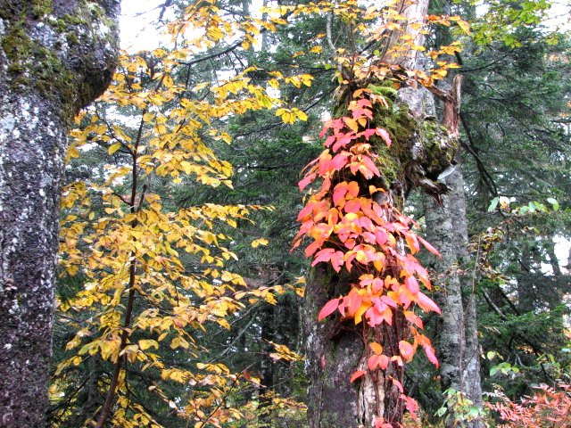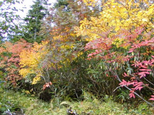 「ヤセ尾根のサラサドウダンの紅葉」(栂池自然園にて)