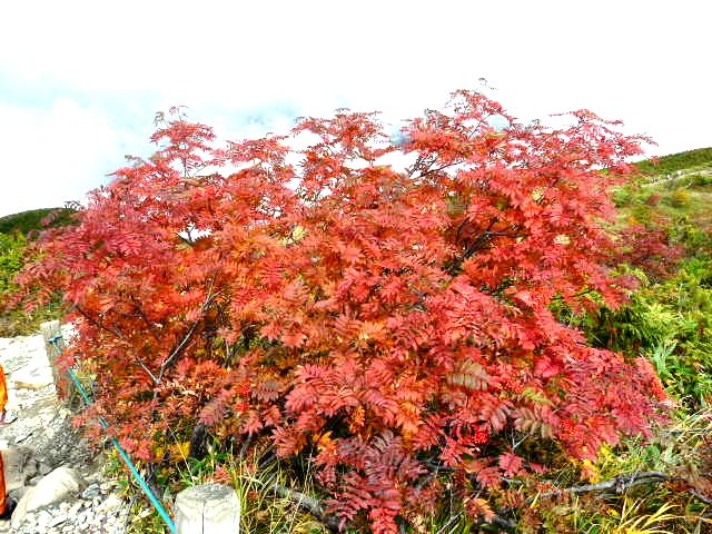 「ナナカマドの紅葉と白馬大池」(白馬大池にて)