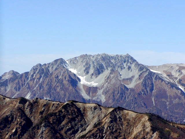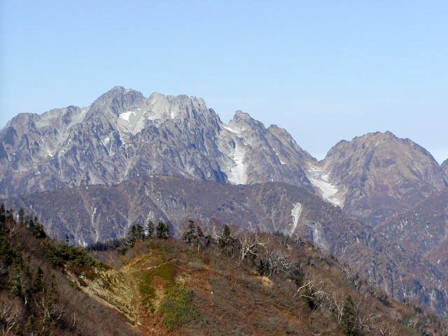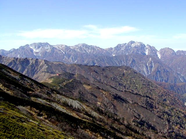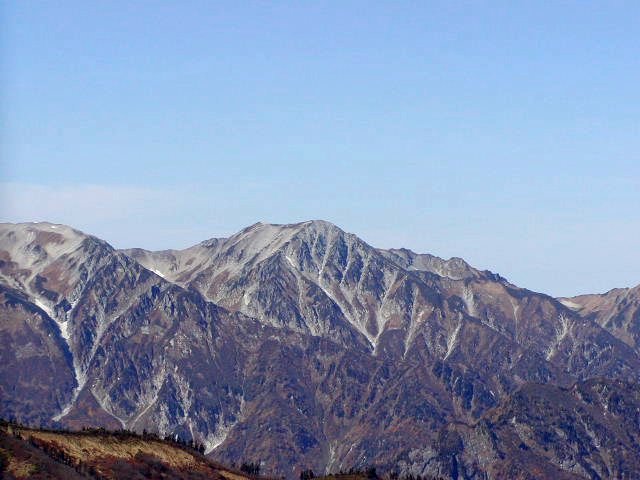 「晩秋の岩小屋沢岳、奥には立山・真砂岳・別山」(柏原新道にて)