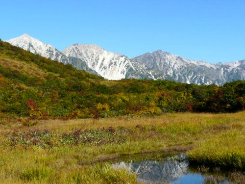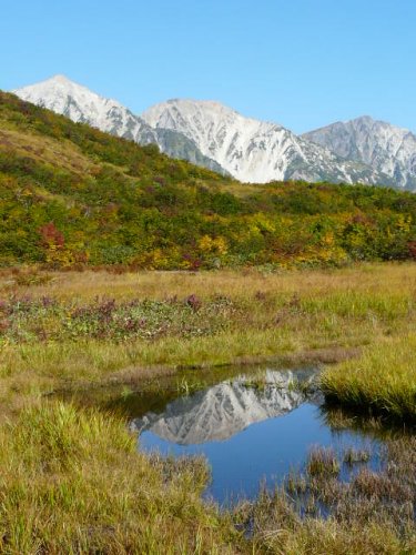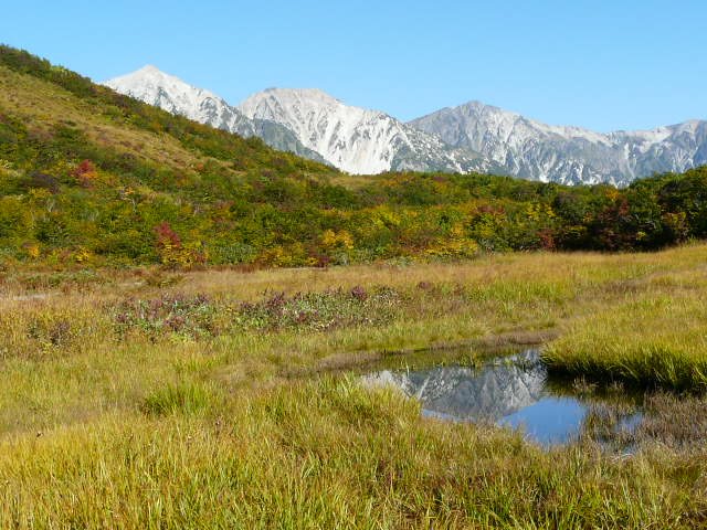 「秋の白馬三山と鎌池」(黒菱・鎌池にて)