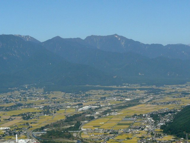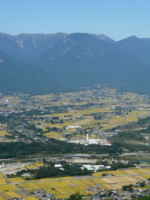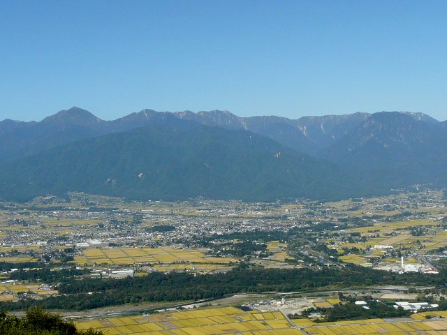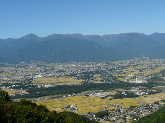 「春の北アと安曇野の田園風景」(長峰山にて)