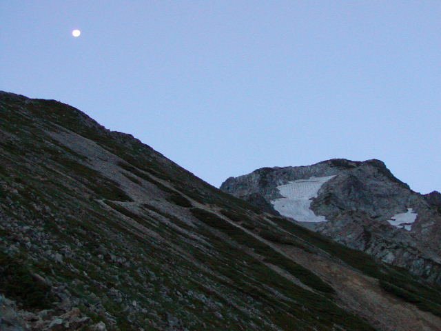 「月と五竜岳」(五竜山荘にて)