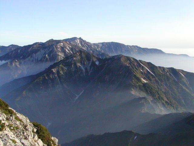 「夏の朝の白岳・牛首・八方尾根」(五竜岳山頂にて)