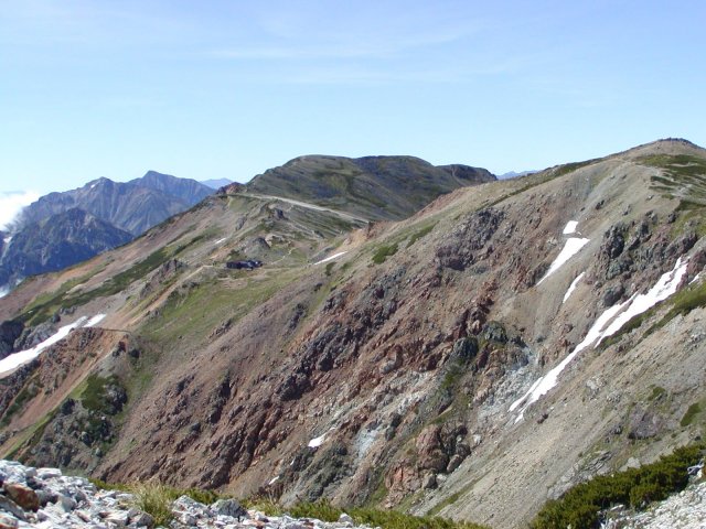 「初夏の唐松岳頂上山荘の稜線」(唐松岳にて)