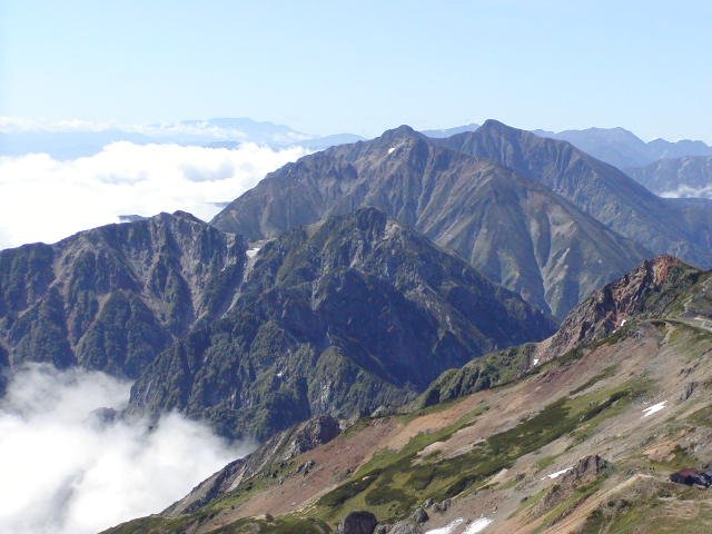「夏の水晶岳・真砂岳・野口五郎岳」(燕岳にて)
