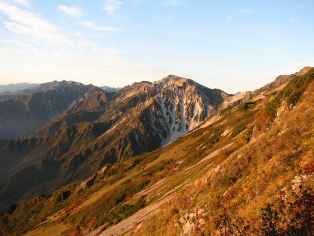 秋色の杓子岳・白馬鑓ヶ岳(船越ノ頭〜小蓮華岳にて)