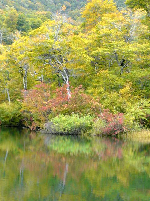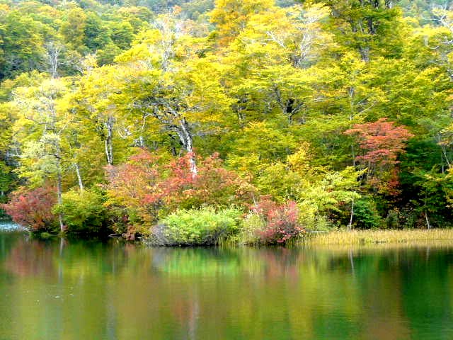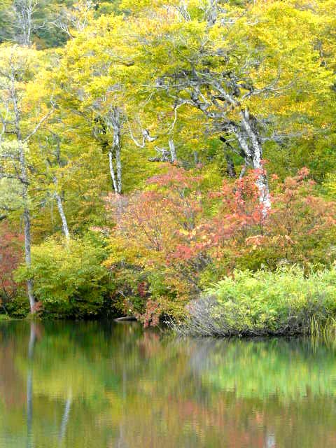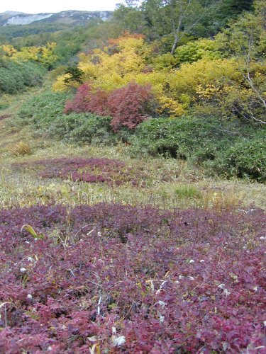 秋の栂池自然園(紅葉したクロマメの木・ウラシマツツジ)
