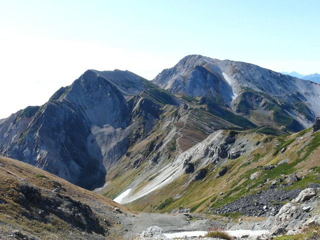 「初秋の杓子岳と白馬岳」(白馬鑓ヶ岳にて)