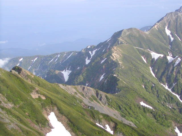 「雪倉岳(2611m)・鉢ヶ岳(2563m)・朝日岳(2418m)」(雷鳥坂にて)