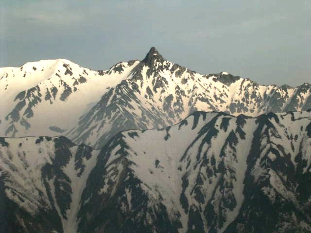 「残雪の前常念岳〜蝶ヶ岳」(5/下;常念岳にて)