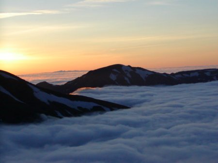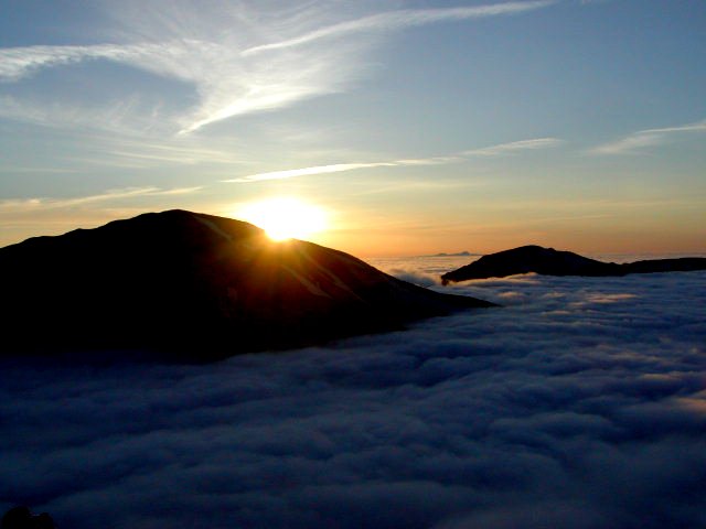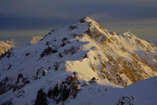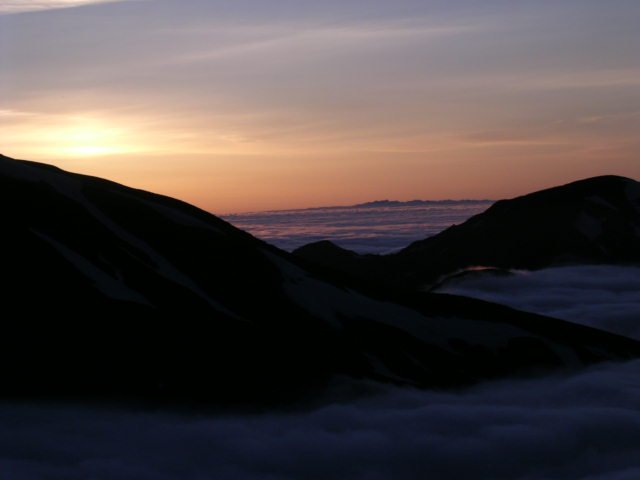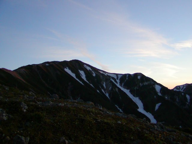 「夕暮れの鉢ヶ岳・雪倉岳」(雷鳥坂にて)