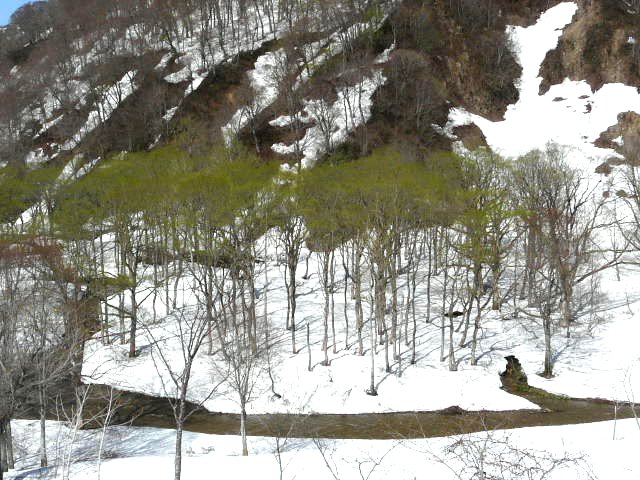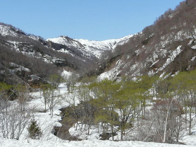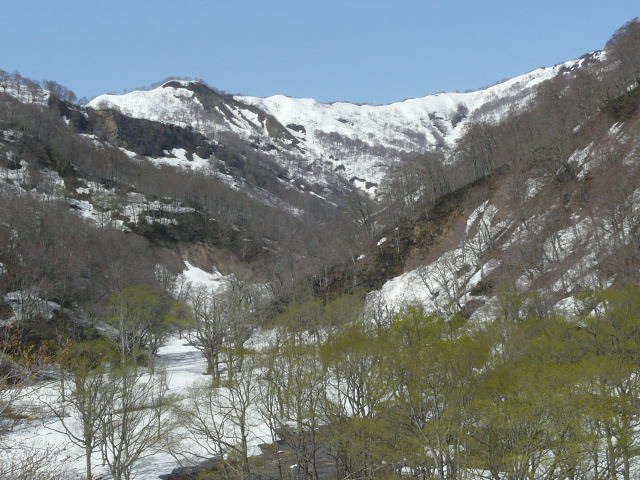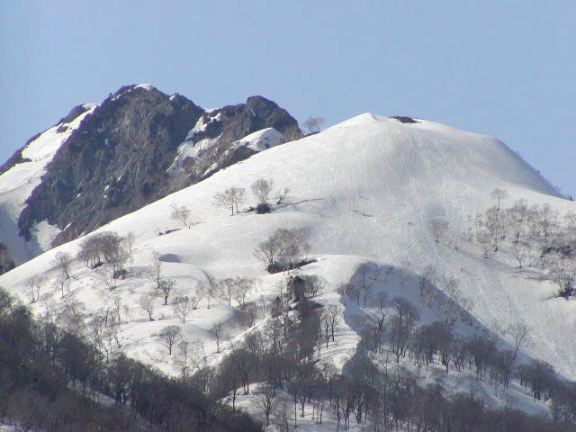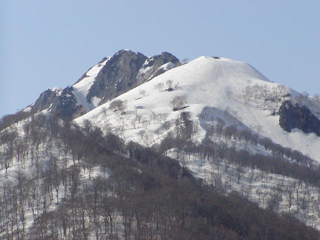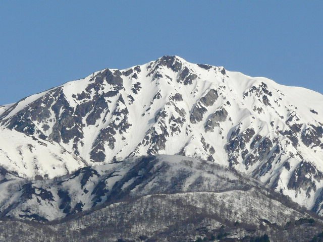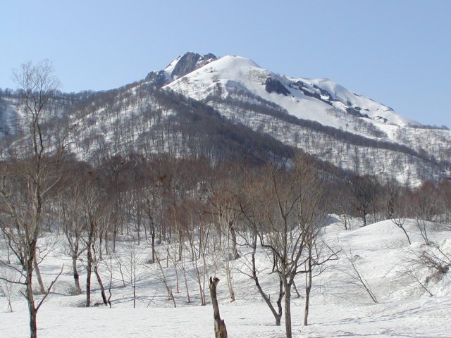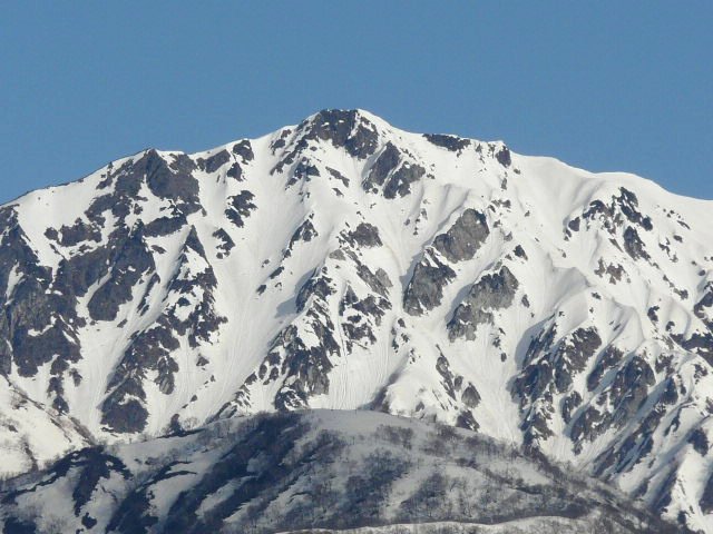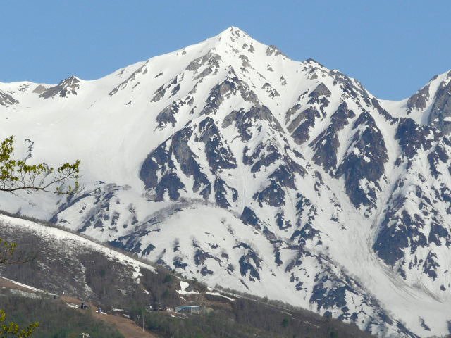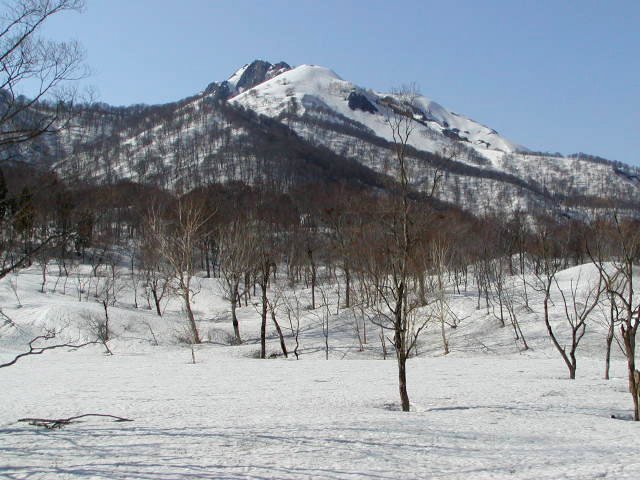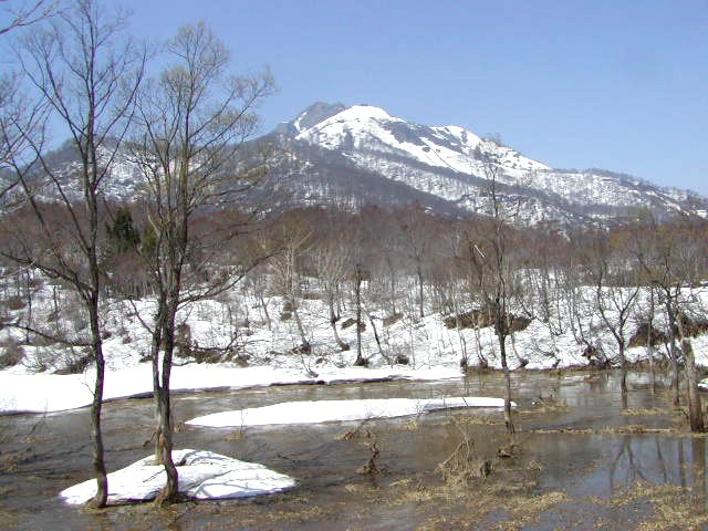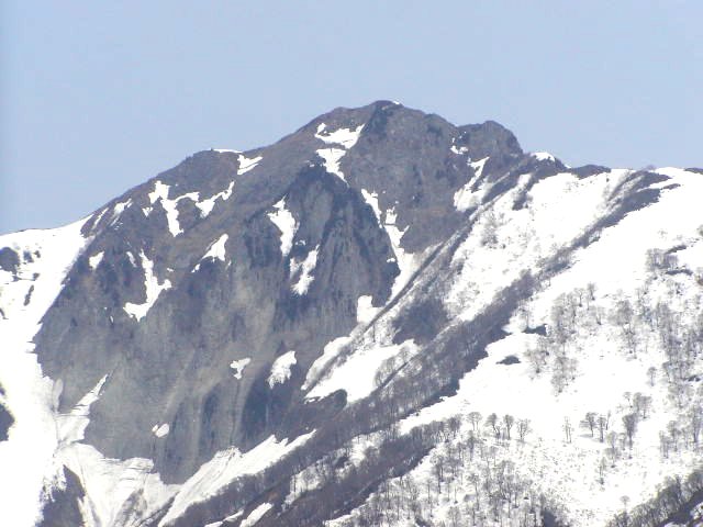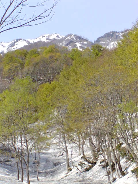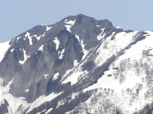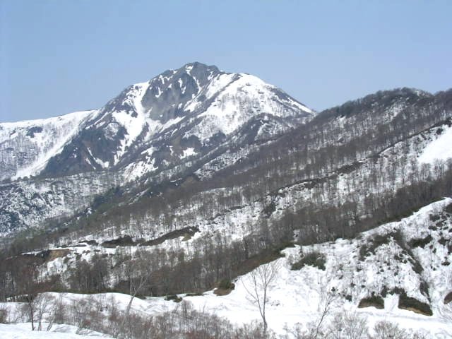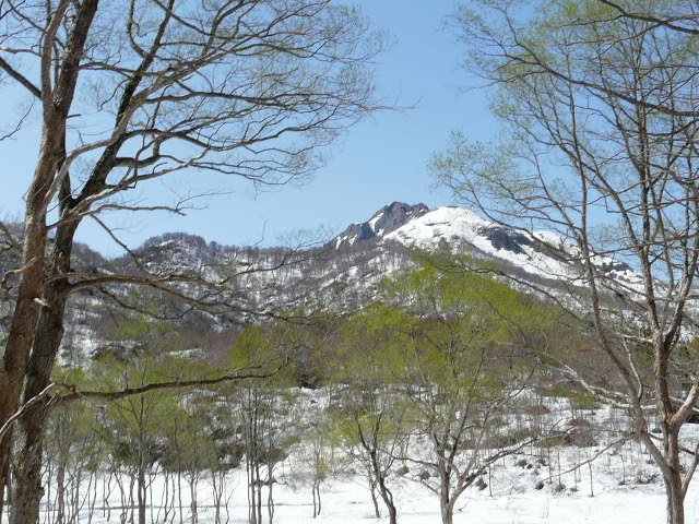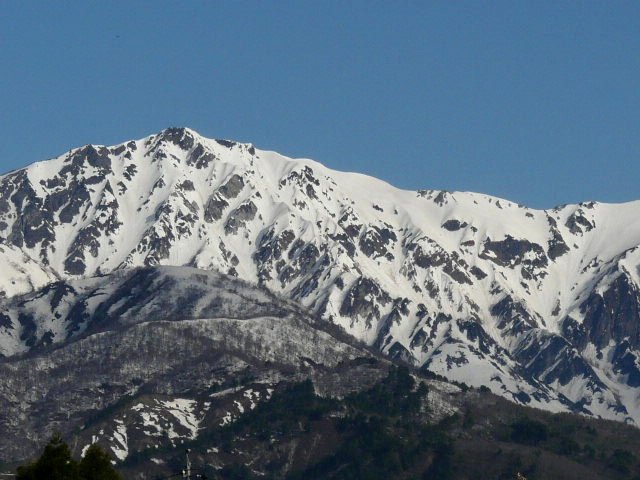 「残雪の雨飾山」(5/上;雨飾高原にて)