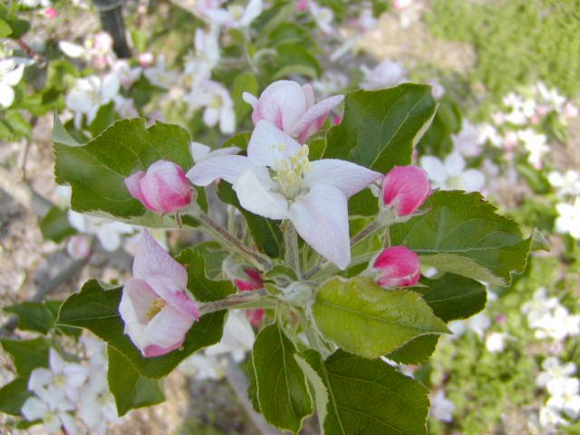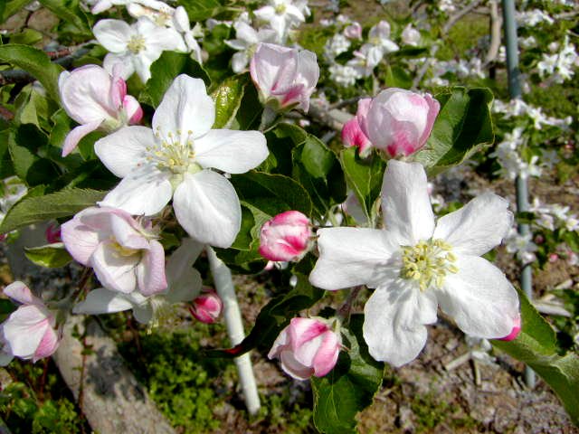 「鵜山の桜並木と餓鬼岳」(4/上;池田町鵜山にて)