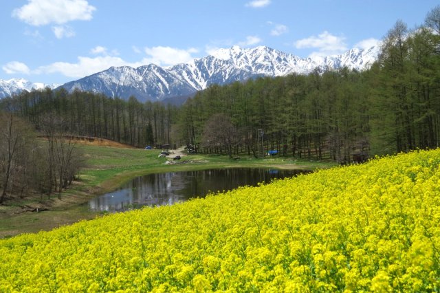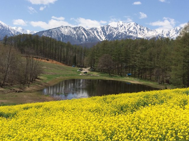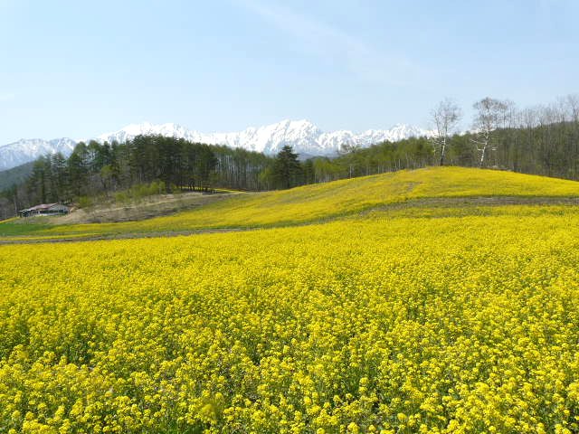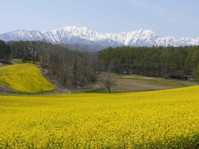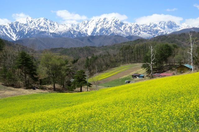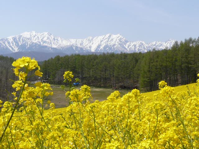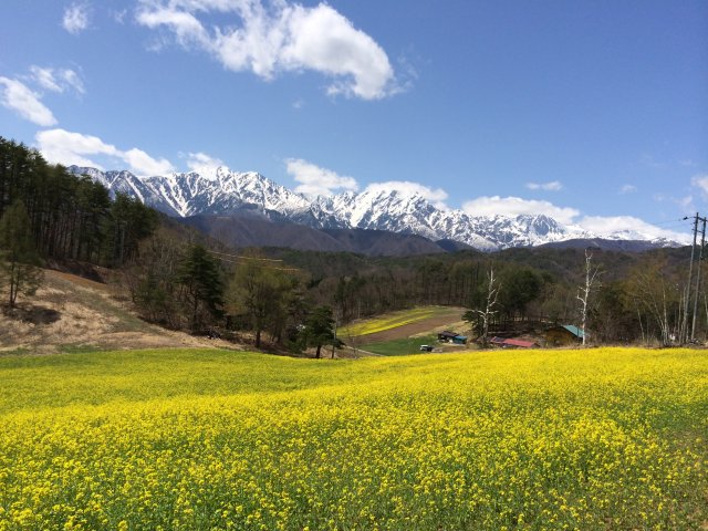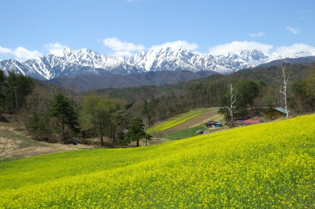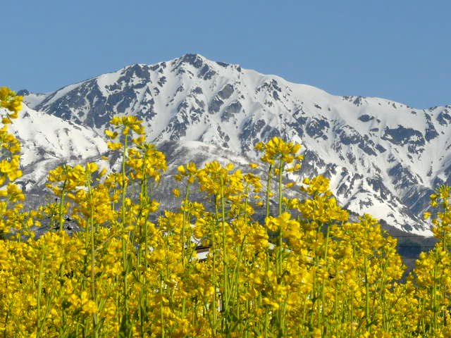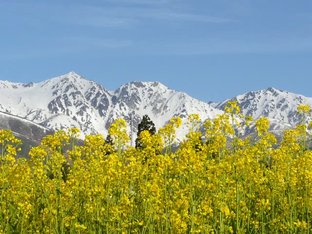 「菜の花と白馬三山・白馬岳」(4/下;白馬深空にて)