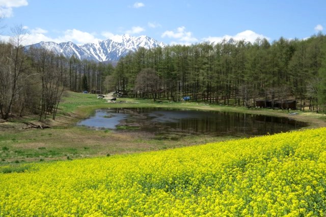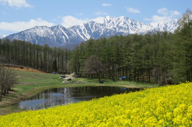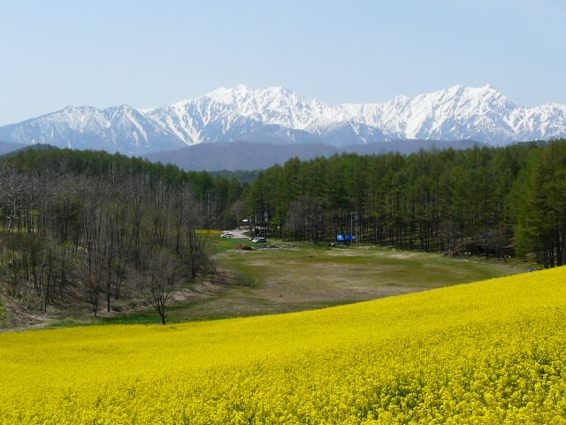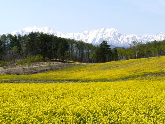 「菜の花と爺ヶ岳・鹿島槍ヶ岳(幻の池なし)」(大町・中山高原にて)