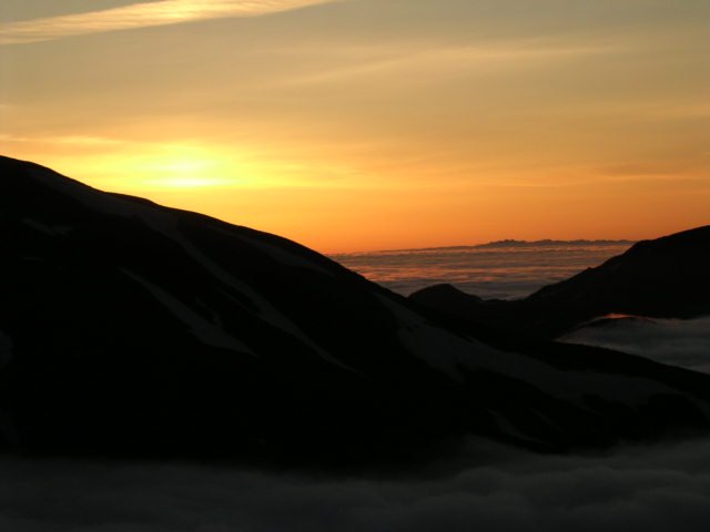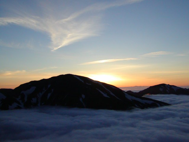「夕焼けの雪倉岳」(雷鳥坂にて)
