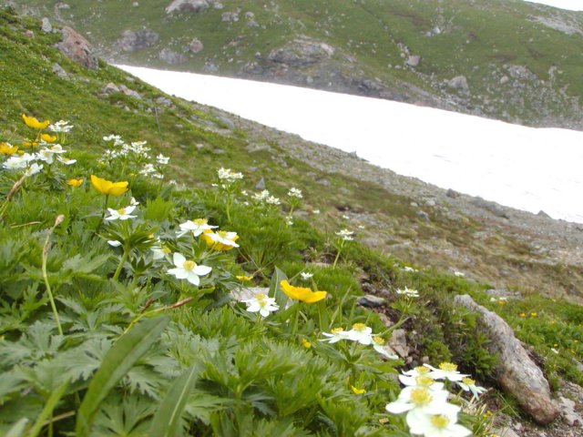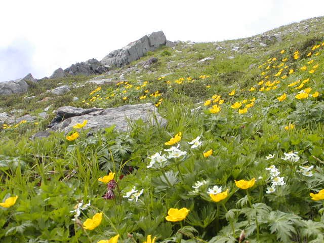「シナノキンバイ・ハクサンイチゲ」(白馬岳にて)