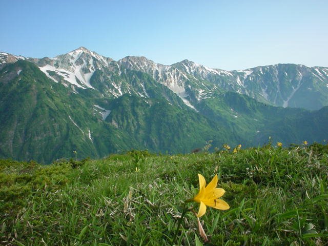「ニッコウキスゲ咲く初夏の五竜岳・鹿島槍ヶ岳」(07/上:八方尾根にて)