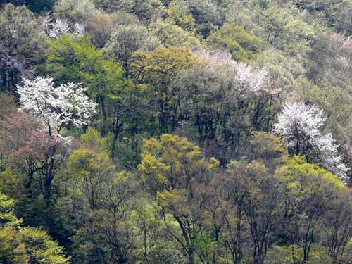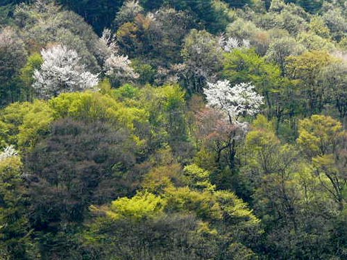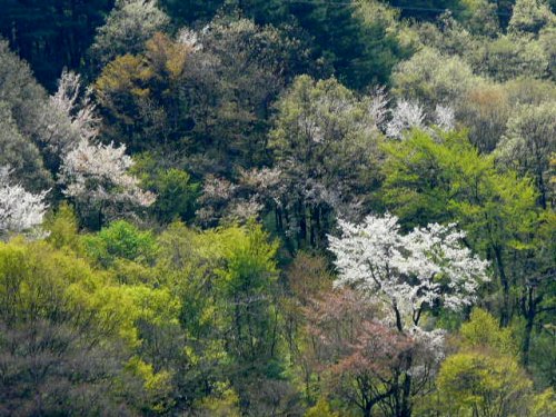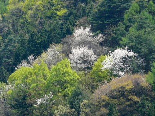 「松本・梓川沿いの山桜」(4/中;梓川にて)