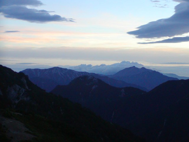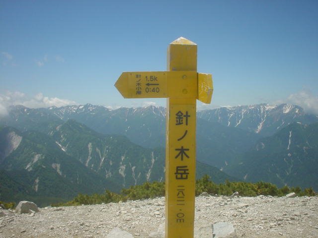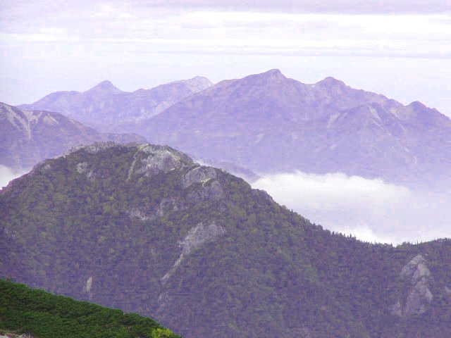 燕岳からは裏銀座の樅沢岳(2755m)・双六岳(2860m)・三俣蓮華岳(2841m)・鷲羽岳(2924m)・ワリモ岳(2888m)・南真砂岳(2713m)・水晶岳(2986m)・真砂岳(2862m)・野口五郎岳(2924m)・三ツ岳(2845m)・烏帽子岳(2628m)、