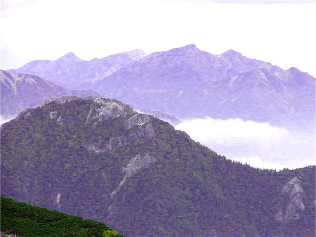 「夏の水晶岳・真砂岳・野口五郎岳」(燕岳にて)